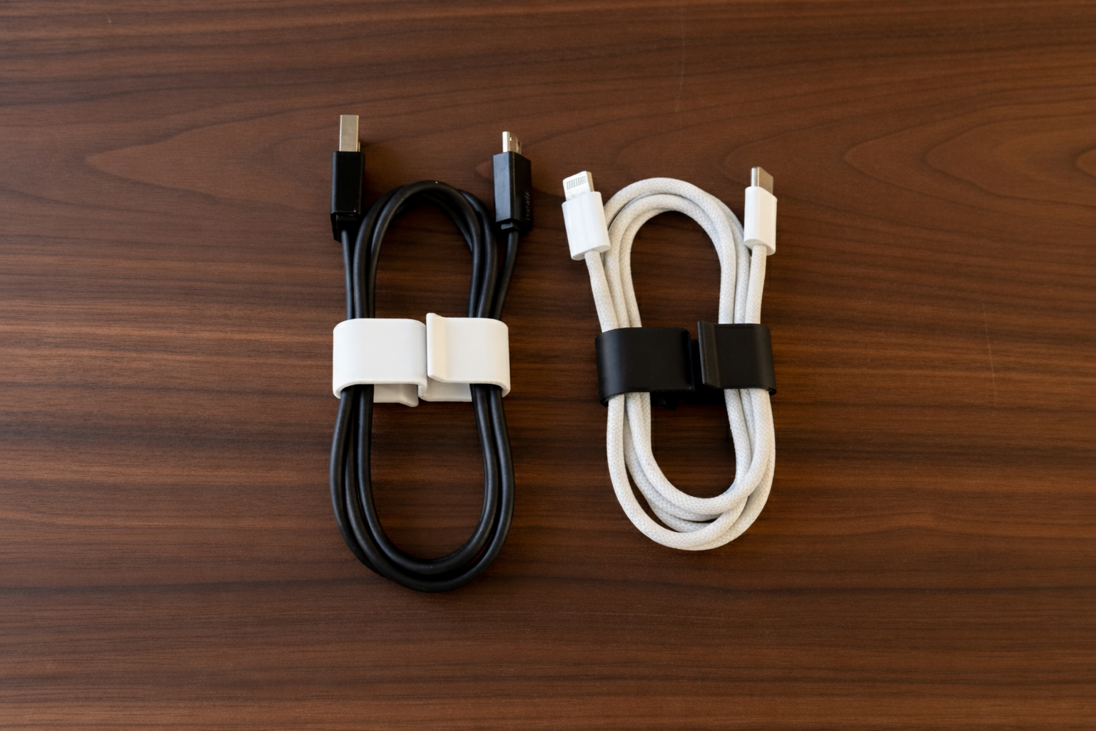 Enkel hållare för ihoprullade USB kablar. Priset är för 5-pack.